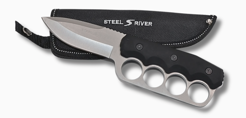 This is NOT your average blade. It’s a full-tang, razor-sharp trench knife with a built-in knuckle guard—designed for serious performance.